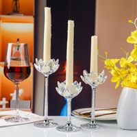 Customized Multi Size High Quality Crystal Silver Diamond Filled Transparent Lotus Glass Candle Holder
